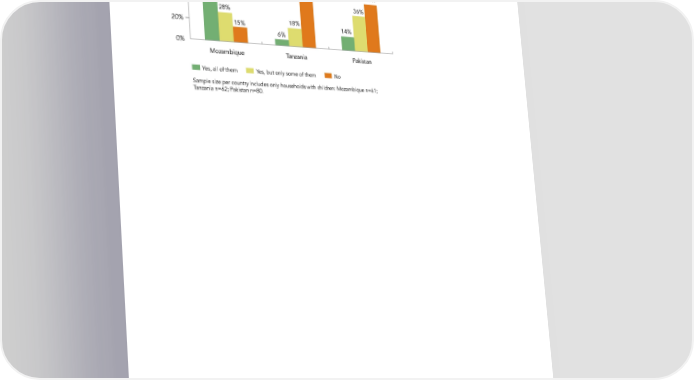SAMPLE DEMOGRAPHICS AND AGRICULTURAL CHARACTERISTICS | 27 FIGURE 4: “If you have children, do you want them to continue farming” MAY 2015 100% 80% 60% 57% 61% 49% 40% 36% 28% 20% 15% 18% 14% 6% 0% Mozambique Tanzania Pakistan Yes, all of them Yes, but only some of them No Sample size per country includes only households with children: Mozambique n=61; Tanzania n=62; Pakistan n=80.